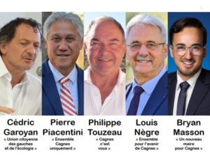 Municipales Cagnes 2026 : les 225 candidats soumis à votre vote Voici tous les membres des listes Nègre, Masson, Touzeau, Garoyan et Piacentini Liste Louis Nègre (« Ensemble pour l’avenir de Cagnes ») 1-Louis Nègre2-Roxane Bignell, notaire3-Lionel Dolciani (conseiller municipal sortant élu sur la liste d’opposition Piret, puis membre du groupe d’opposition Union pour Cagnes), entrepreneur4-Rosette Germano (adjointe